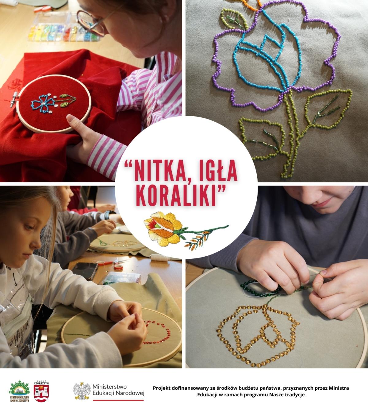 4. Nitka, igła, koraliki (Haft podhalański) – nauka podstaw haftu, łączenia nici, cekinów i koralików, inspirowana dawnymi zdobieniami strojów góralskich i pienińskich.