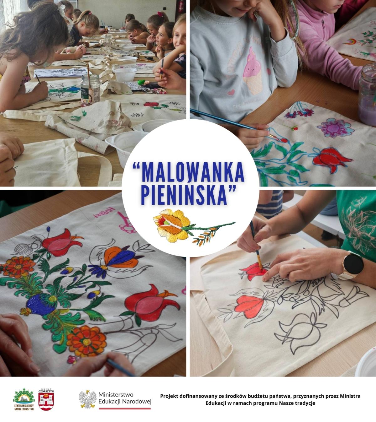 2. Malowanka Pienińska – malarstwo na tkaninie, tworzenie własnych kompozycji na bawełnianych torbach z motywami ludowymi, takimi jak wzory z tradycyjnych flisackich kamizelek, rozwijanie kreatywności poprzez łączenie tradycji z nowoczesnym podejściem.