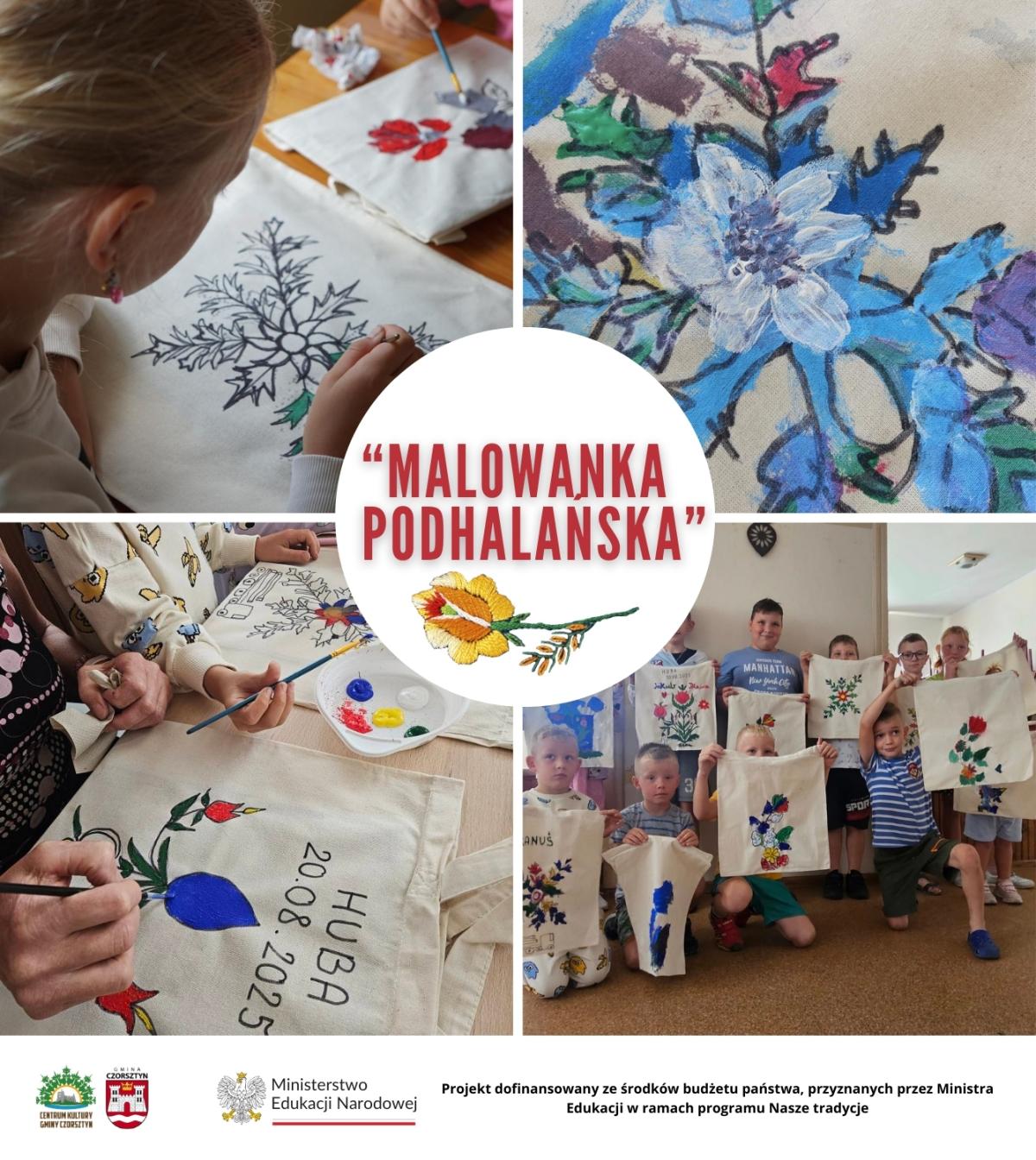 3. Malowanka Podhalańska – malarstwo na tkaninie z motywami Podhala, tworzenie własnych kompozycji na bawełnianych torbach, rozwijanie kreatywności i poznawanie regionalnego dziedzictwa artystycznego.
