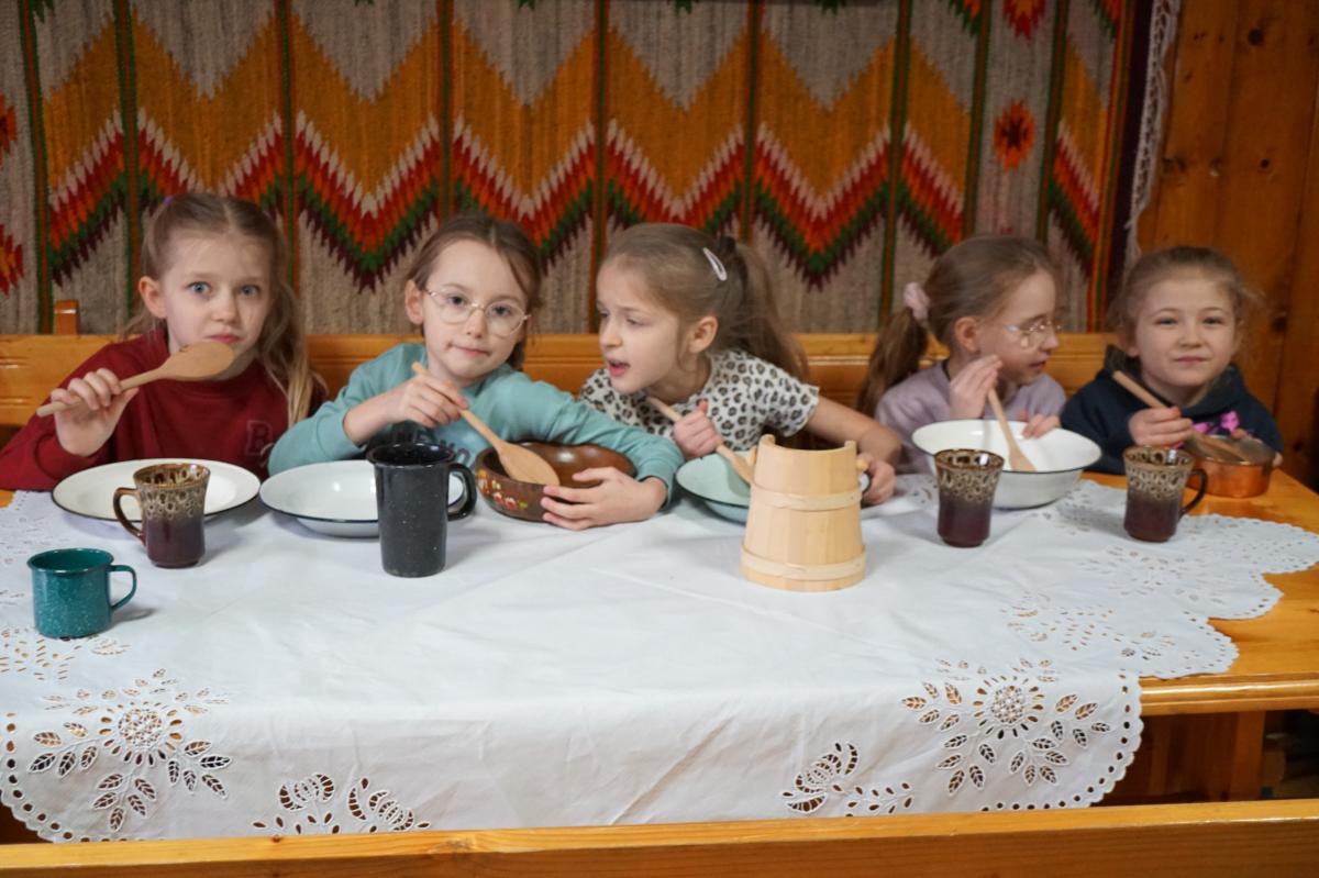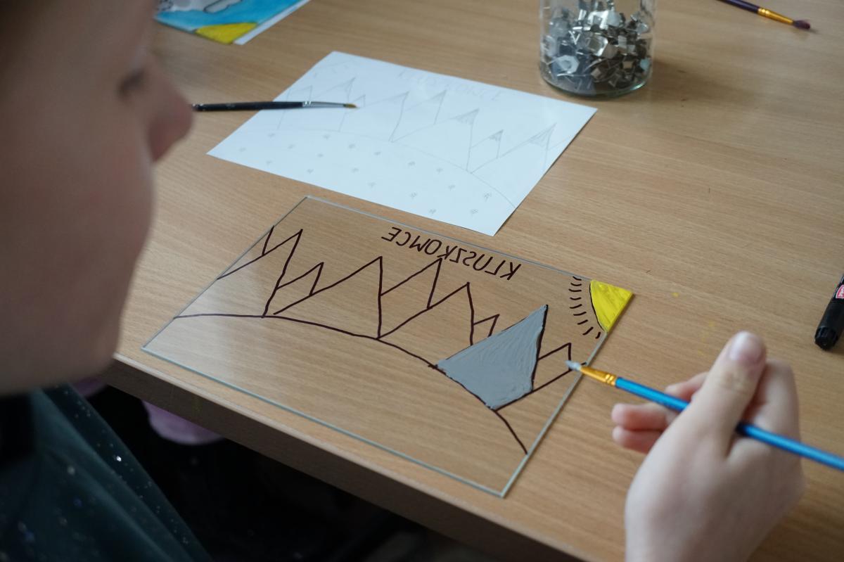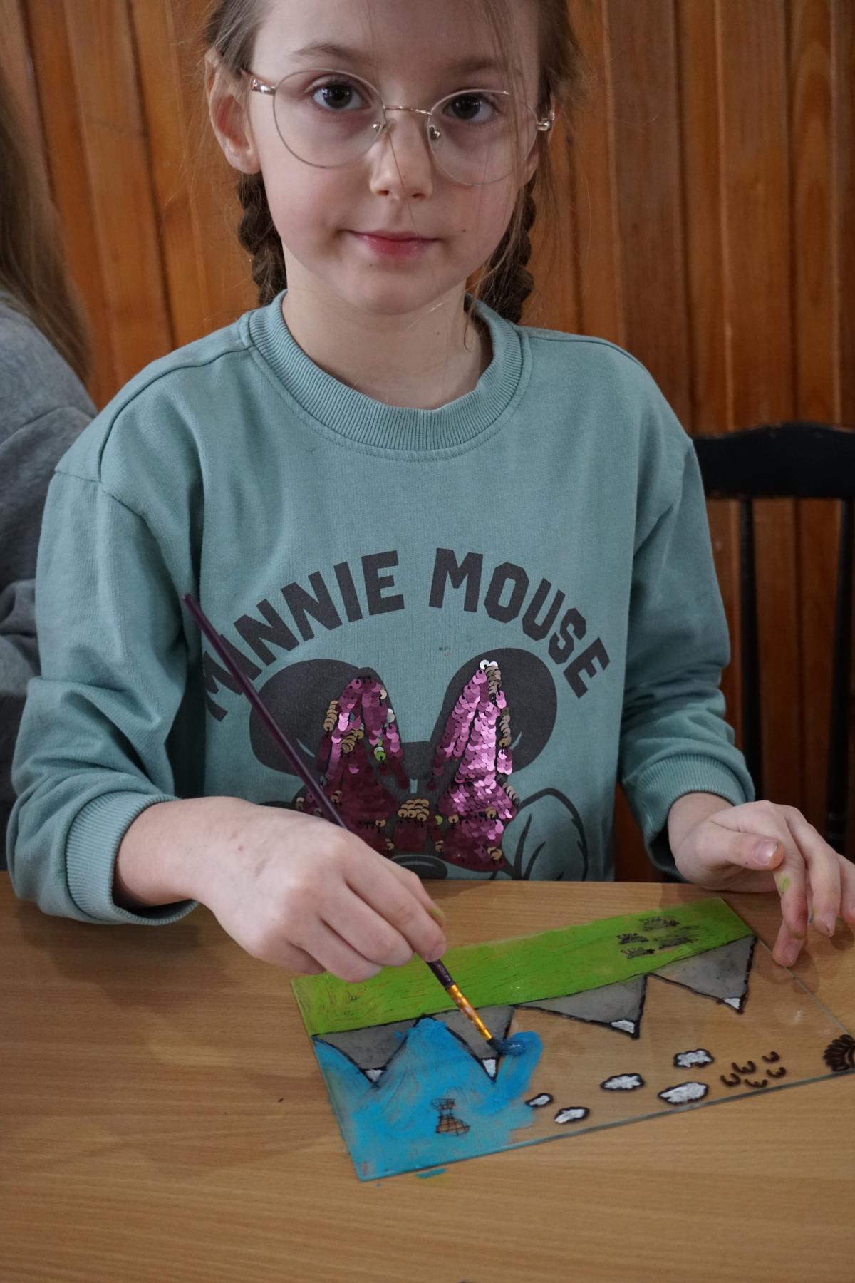 Tym razem spotkaliśmy się w Domu Kultury w Kluszkowcach, gdzie na dzieci czekało mnóstwo kreatywnych atrakcji. Podczas zabaw artystycznych uczestnicy malowali walentynkowe upominki na drewnie oraz tworzyli wyjątkowe „pocztówki” na szkle. Nie zabrakło też czasu na odkrywanie lokalnej tradycji – dzieci z radością bawiły się w Izbie Regionalnej.