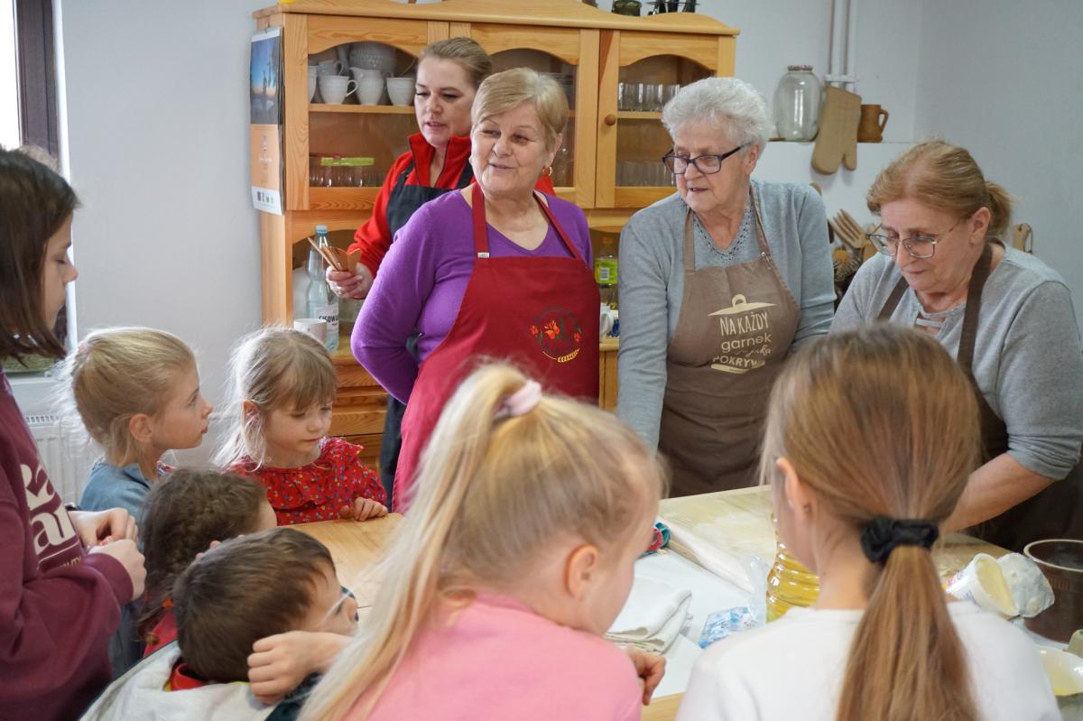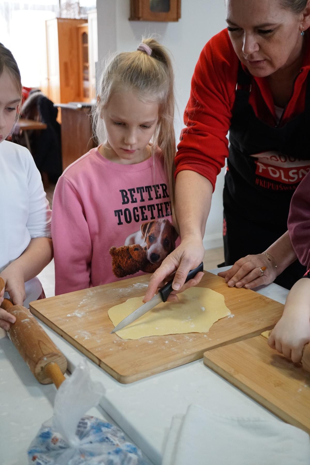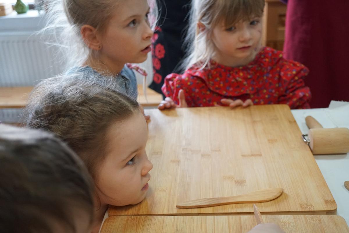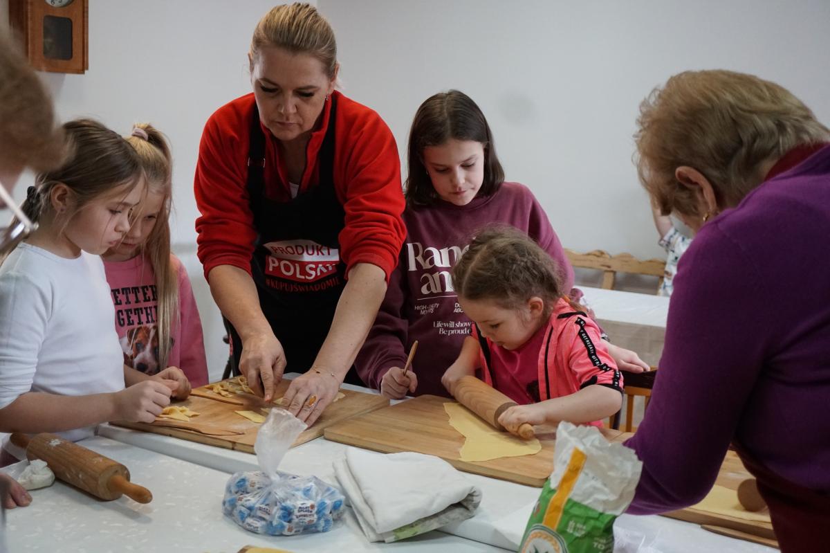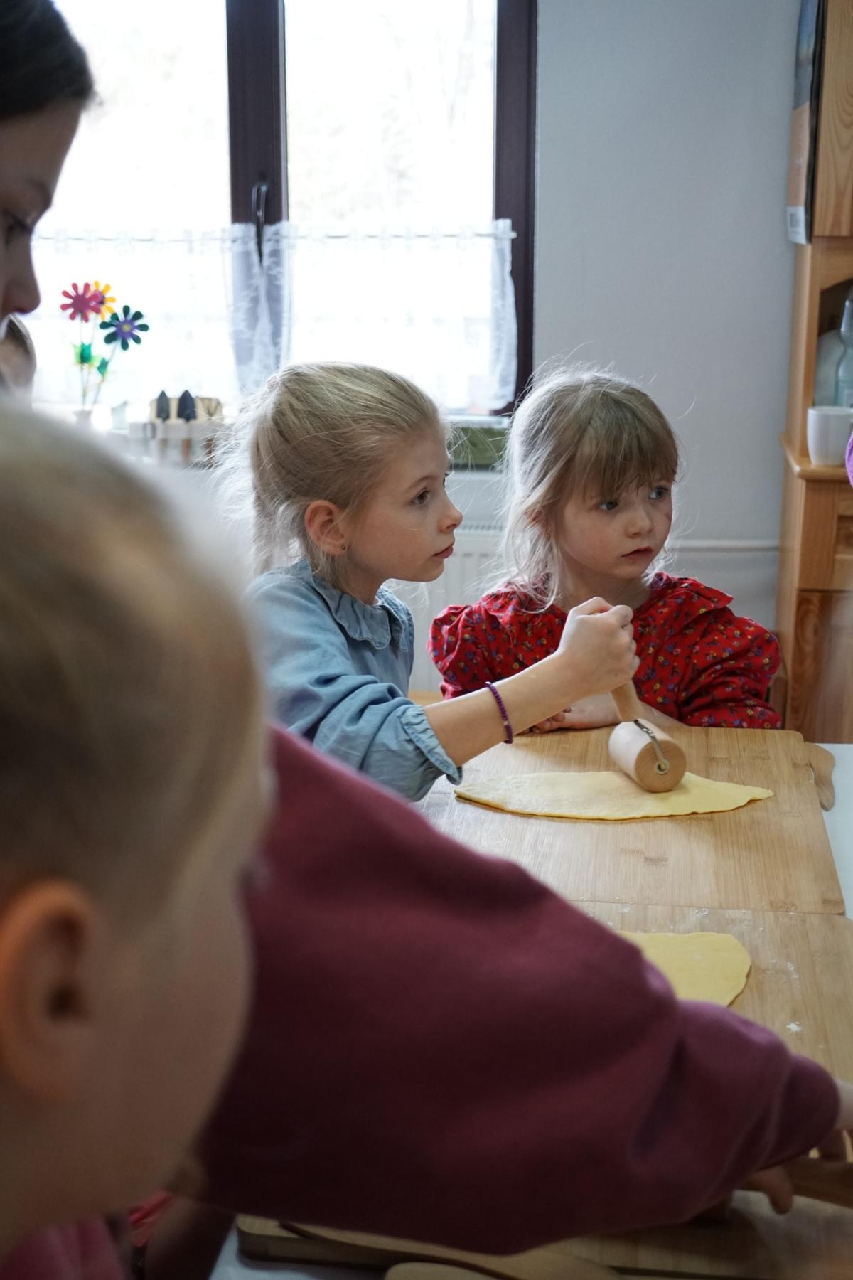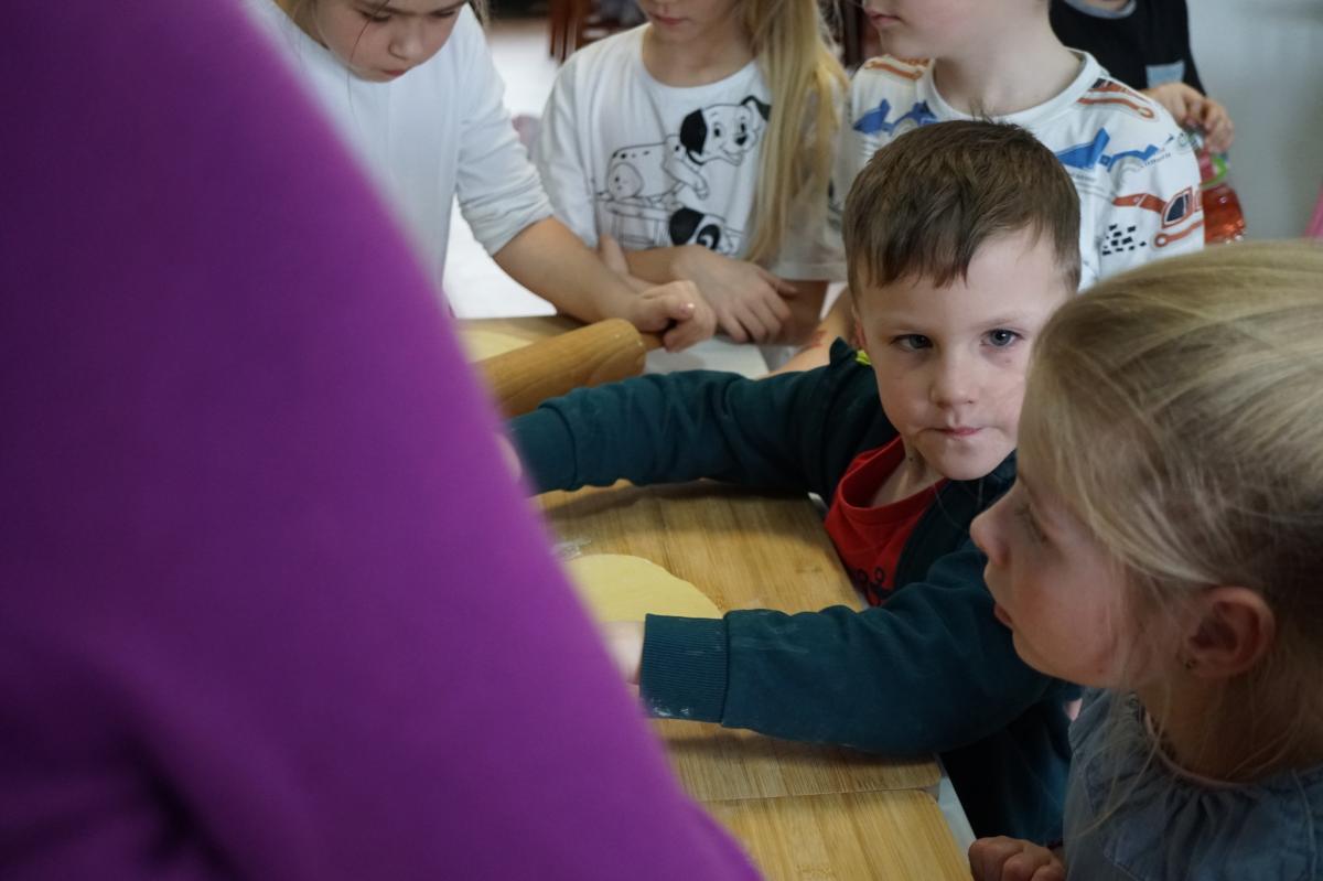 Dzieci z ogromnym zaangażowaniem słuchały wskazówek, a następnie samodzielnie przystąpiły do pracy – wałkowały ciasto, formowały charakterystyczne kształty i z ciekawością obserwowały cały proces smażenia. Nie zabrakło też rozmów o kulinarnych tradycjach oraz radości ze wspólnego spędzania czasu.