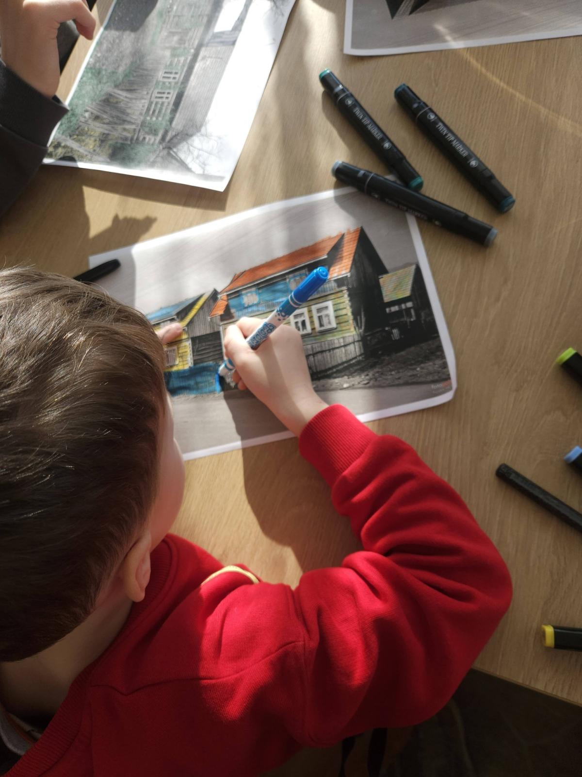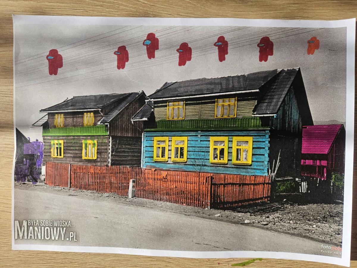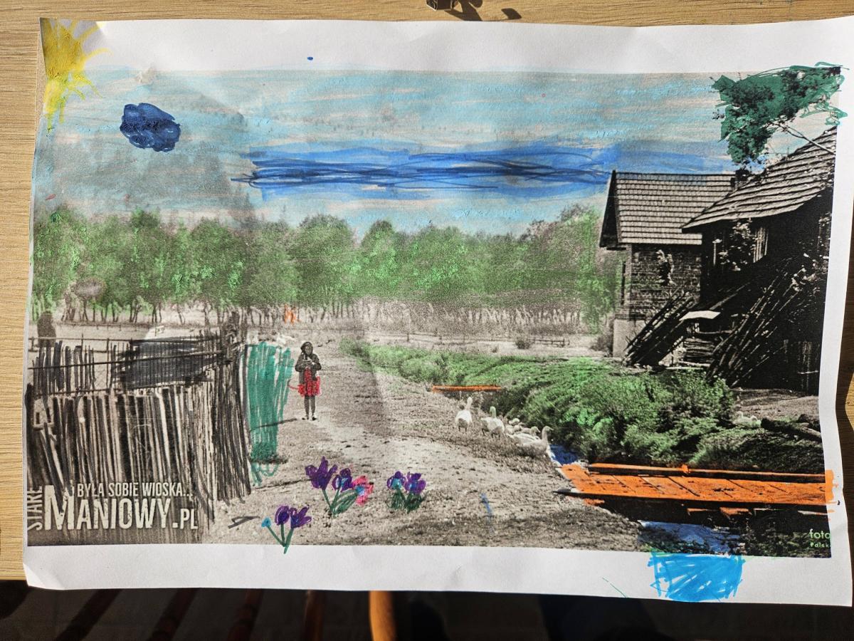 Dzisiejsze zabawy plastyczne w Domu Kultury w Maniowach upłynęły pod hasłem „Dziecięce spojrzenie na Stare Maniowy”. Uczestnicy zajęć w kreatywny sposób ożywili dawne fotografie, nadając im nowe znaczenie poprzez zabawę kolorem.