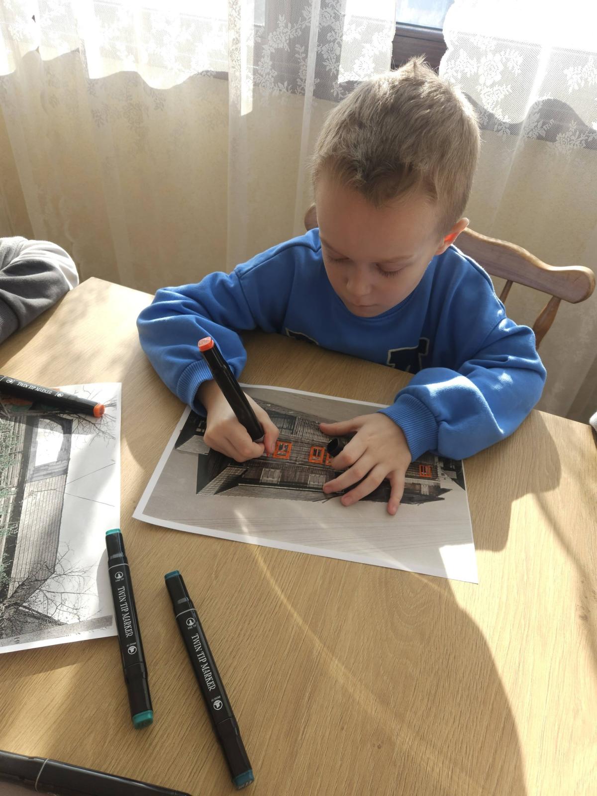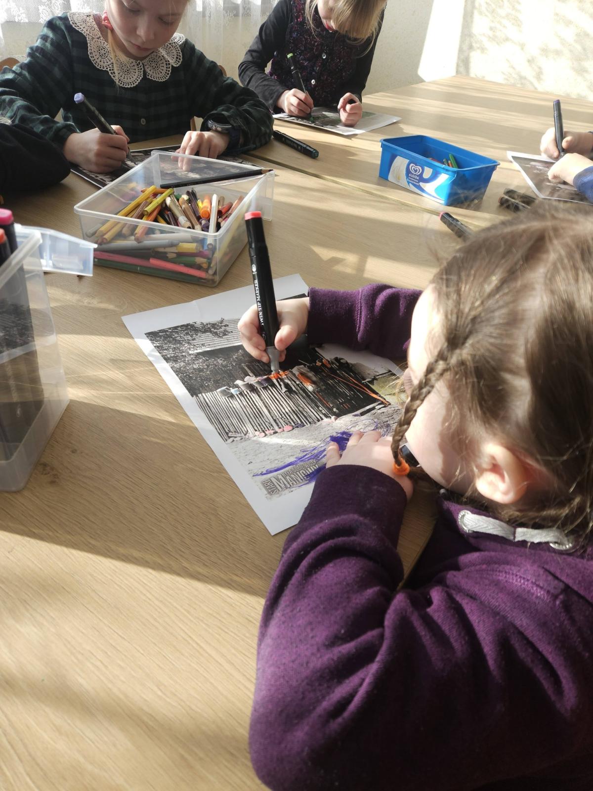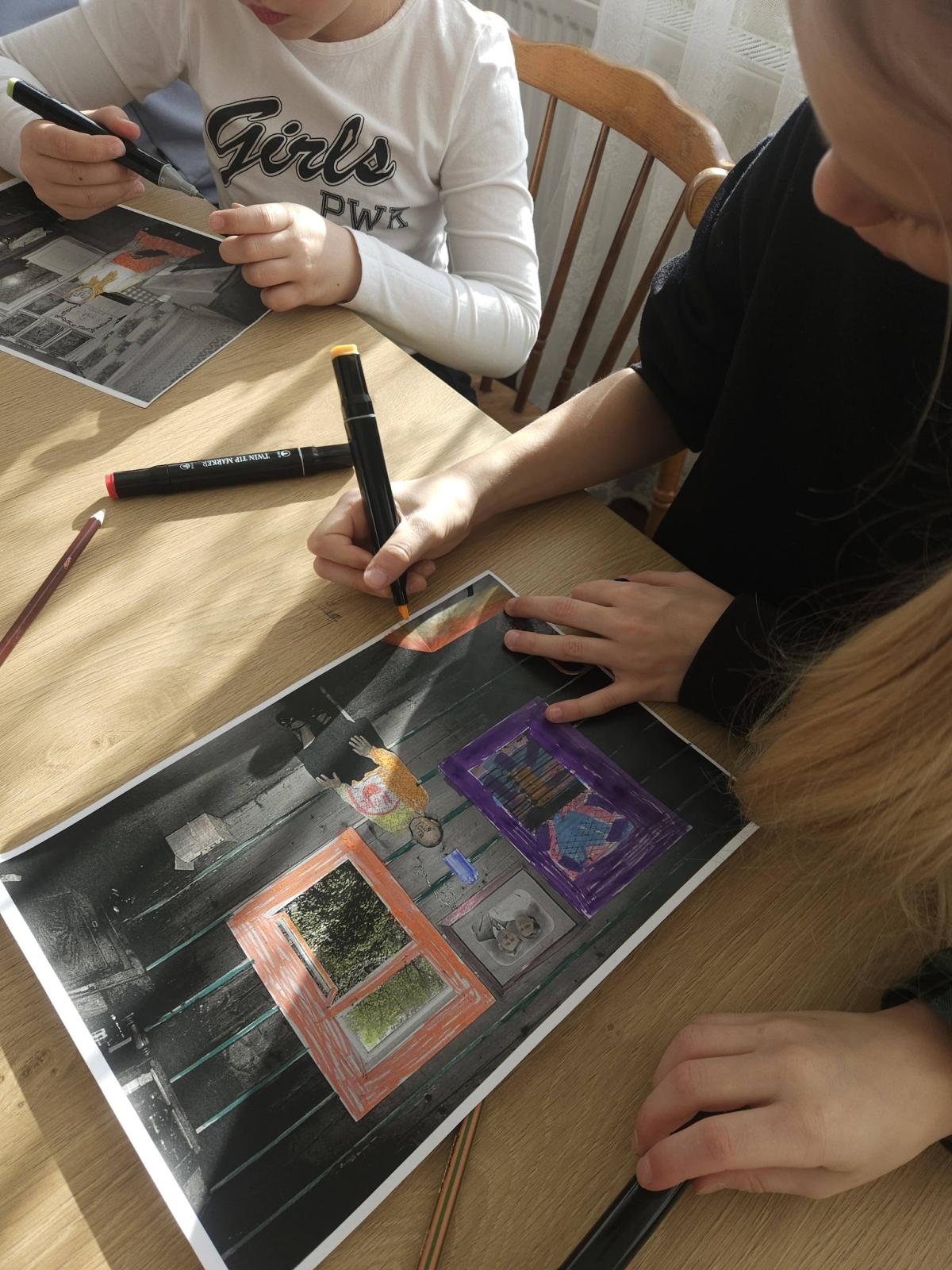 Dzisiejsze zabawy plastyczne w Domu Kultury w Maniowach upłynęły pod hasłem „Dziecięce spojrzenie na Stare Maniowy”. Uczestnicy zajęć w kreatywny sposób ożywili dawne fotografie, nadając im nowe znaczenie poprzez zabawę kolorem.