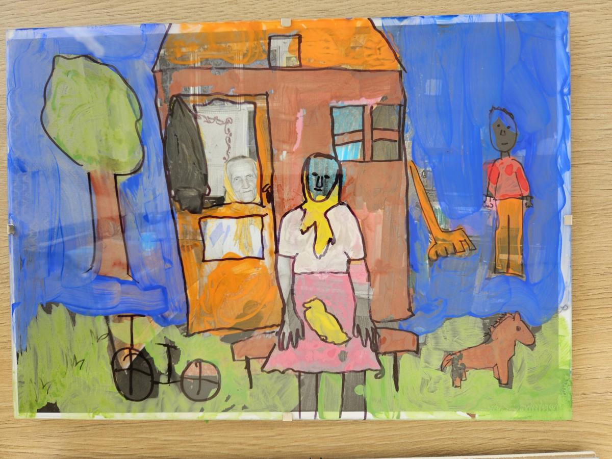 Zabawy plastyczne w Domu Kultury w Maniowach - „Dziecięce spojrzenie na Stare Maniowy”.
